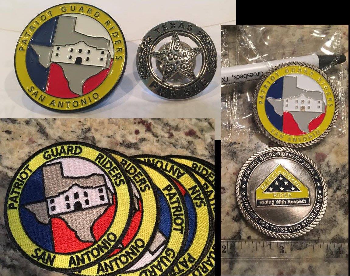 We have a distinctive SA PGR patch, Pin, SA PGR Banner and a few other items made. SA PGR Members, the Pins, Patches, and Coins are here! The pins in the top picture will be exchanged for a donation of $3 for one or $5 for both, the patch in the bottom picture will be exchanged for a donation of $5, and the coin in the picture on the right will be exchanged for a donation of $5. Both Juan Tarango and Jean'n Kristine Clark have all three and more. You can call Juan Tarango at 210-643-3724 or call/text Jean Clark at 210-452-2745