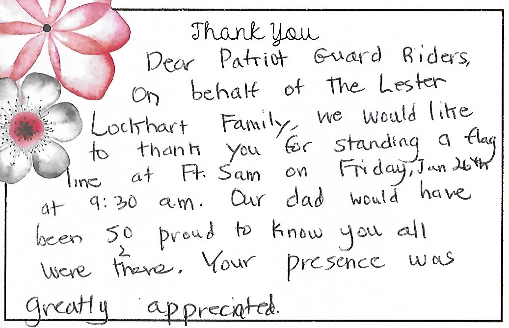 Thank You Card from the Lockhart Family