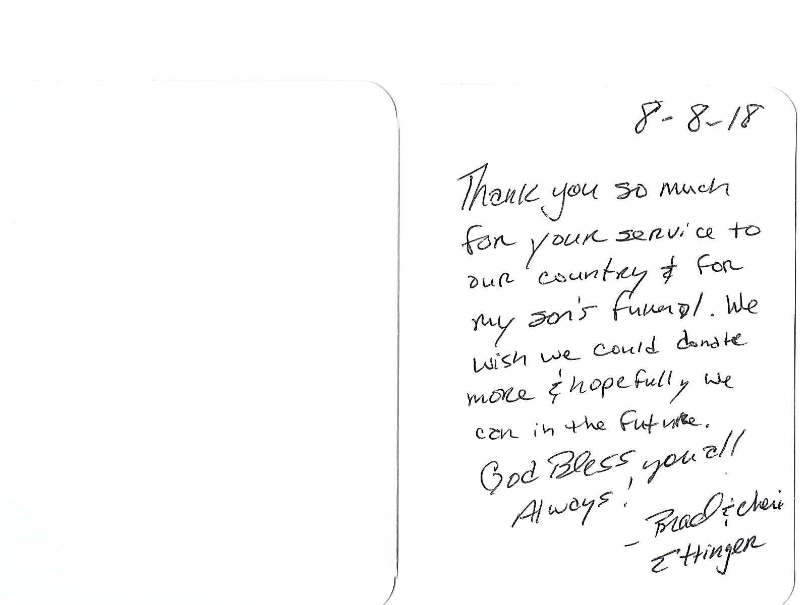 Thank You Card from the Ettinger Family
