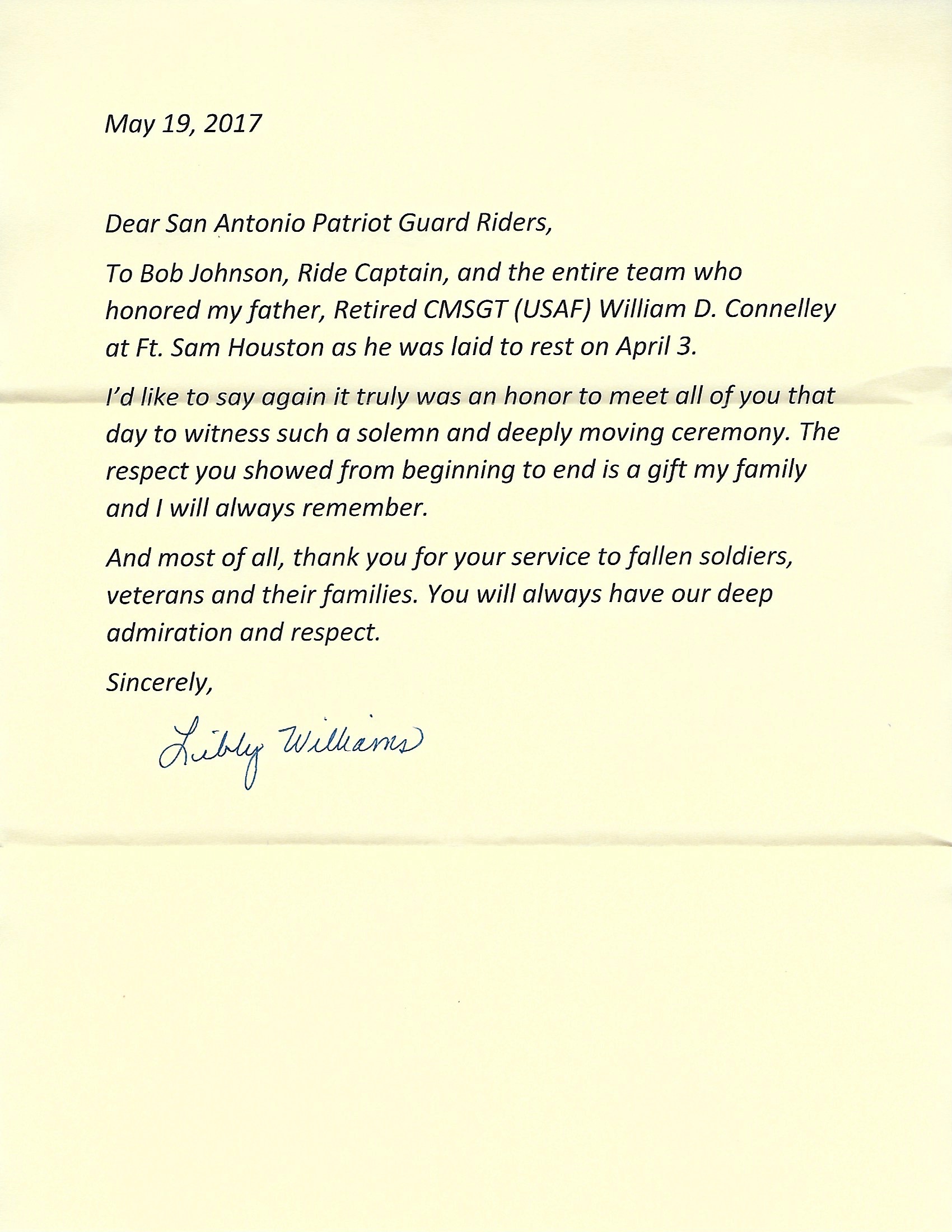 Letter from Family of William Connelley